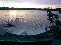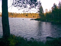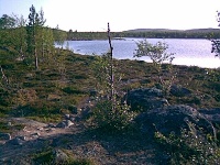 U jezera Nammijarvi to moooc krasny. Dneska je cely den slunicko, vecer jeste 20 ves stinu. Skoda, ze teplomer po prvnim zmoknuti prestal merit maximum a minimum. Nadherne misto (to se ale v Laponsku da rikat take skoro kazdy den). Finove tu maj9 opet bezvadne vybavenou autiotupu pro poutniky. Take tu je stara samska vesnicka Piilola. Asi deset staveni na louce u jezera. Dokonce tu jsou nejaci obyvatele, i deti. Bud sem jezdi potomci puvodnich samskych starousedliku na prazdniny a na ryby (ve Svedsku jsme takovou osadu videli, provozovalo to nejake rybarske druzstvo s pravidelnou vrtulnikovou dopravou), nebo jsou to obycejni "luftaci". Akorat nevim, jak se sem dostali. Pesky je to nejbliz 15.5 km od norskeho parkoviste v NP Ovre Pasvik. Anebo sem prileteli hydroplanem, to jsme videli loni v Kaldoaivi.