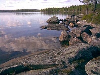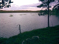 Finove poznavaji prirodu nejlepe tak, ze v ni ziji a ze ji prochazeji. Jejich cundr se jmenu vaellus. Nekteri jen dojedou autem do nejakeho narodniho parku a tam udelaji desetikilometrovy okruh, jini projdou vetsi kus prirody a mnohde mohou vyuzivat volne pristupne (nebo i placene) sruby. Extra trida je putovani prirodou jen podle mapy a GPS, bez cest, bez zazemi... To jsme se rozhodli udelat my. Od jezera Nammijarvi jsme dosli az sem. Orientace byla docela dobra az na to, ze ne vsechny mocaly, a mnohdy i jezera, jsou namalovany v mapach. Kolikrat se ujde jen jeden kilometr za hodinu. Ale nocni pohled na skoro nezapadajici slunce nad jezerem, u ktereho stanou tak tri lidi za rok, stoji za to.
