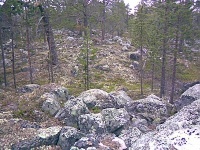 Expedice dosahla jeden ze severovychodnich cipu jezera Kyyneljarvi. Puvodne jsem si myslel, ze tu bude prehledna krajina, vrcholova horska tundra a spousta jezer. Ve skutecnosti je tu nekonecny ridky borovy les neuveritelne plny morenovych poli. Prakticky jedine morenove pole desitky kilometru dlouhe. Chodit mezi tim je o zlomeni nohy. Orientace zadna, neni nikam videt, nebyt busoly a GPS, jsme ztraceni. Ale takhle je to v pohode. Zacalo prset, takze o dalsi zazitky postarano. K veceri kolinka s komary a caj s komary, potom kafe s komary. Komari jsou vsude. Pu-erh je nastesti lahodnejsi, takze je prerazi. Je zajimave, ze tu clovek, v krajine ve ktere by rekl, ze lidska noha nebyla desitky let, stale nachazime stopy civilizace.Ale jenom u jezer a bohuzel spis novejsiho data. Proste na clunu jde dojet vsude. Tady je docela pekne taboriste a asi padesat flasek od koralky. Inu, svaty Juhannus je treba slavit i v absolutni pustine.