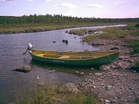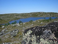 Dnesni vaellus offroadem byl poznamenan stale krasnym pocasim (ve stinu asi 30 stupnu) naprosto neskutecnymi utoky krveziznivych komaru a hledanim cesty mezi mokrady. Ukazuje se, ze mapy nejsou nejpresnejsi. GPS obcas ukazovala, ze stojime uprostred mocalu nebo nektera jezera na mapach zcela chybela. Navic jsme schazeli z "hor" asi 150 metru prevyseni po morenovych polich s balvany zvici 5 metru. 30 kilo na zadech stabilite neprida. Cele odpoledne jsme zdolavali asi 6 km vzdalenost vzdusnou carou. Odmenou je nadherna, asi 1 km dlouha reka mezi jezery Pitka Surnujarvi pres pereje do Surnuvuona (jezero tvori nejaky severni cip Inari). Pereje se jmenu Surnukoski a vetsinou se na druhou strranu da dostat jen pomoci lodky, kterych je tu kupodivu docela dost, asi nejaci sezonni rybari. Letos je v lete vody malo, tak jsme to bez problemu prrebrodili. Taky tu pry bydli nejaky poustevnicky sveraz, ktery ale nema rad lidi.