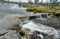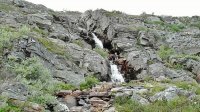 Dneska byl "oddychovy den". To znamena, ze jsem diky hlasenym destovym prehankam (nakonec jich bylo vice nez 10, jedna i s krubopitim) zanechal tezky batoh na srubu, co jsem nasel vcera, a vydal se na pruzkum okoli. Mezi velkym jezerem Tuulijarvi (laponsky Pieggajavri, v jine laponstine Pioggjaur'rr) a malym jezerem Kaisilan Tuulijarvi tece ricka, ktera na cca 2 km prekonava vyskovy rozdil asi 20 metru. Takze je tu pozehnane pereji. Nejhezci jsou primo na vytoku z velkeho jezera Tuulijarvi, voda se preleva pres krasny uplne vodorovny skalnaty prah... z nizsiho maleho jezera Tuulijarvi pak voda preteka do horniho jezera Porejarvi (tam jsem spal ve srubu), pak pres nekolik jezirek do dolniho Porejarvi a z nej vyteka reka Uutanajoka, ktera si to sine nekam do Severniho more. Docela mne bavi zjistovat, jak tyhle vody tecou. Kdyz clovek jde mezi jezery, ma kolikrat pocit, ze je to nebesak, ze nema ani pritok, ani odtok. Ale ma, i kdyz kolikrat je to ricka skryta nekde pod morenovym polem. Nebo hnusna bazina.Reka Tuulijarvi se vsak potatila temi perejemi.