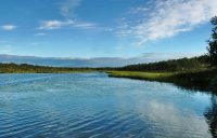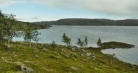 Dalsi krasne jezero, u ktereho nocuji. To druhe jmeno je laponsky, ale nevim, jestli inarskou ci skoltskou samstinou. Odhaduji to spis na inarskou, skoltska pouziva spoustu neznamych pismenek. Bohuzel jsem si ho pri nezapadajicim slunicku nedokazal radne vychutnat. Naprosto silene zerou komari. Jezdim do Skandinavie uz leta, ale to, co dneska predvadeli, bylo prilis. Navic jsem toho moc neusel. Do odpoledne prselo, tak jsem ze stanu nevylezl - a pak byl tak sileny teren, ze jsem toho mel v deset vecer plne kecky. Chtel jsem jit jeste o kus dal, udajne je na stare postovni ceste najaky vodopad.. Uvidimne zitra, Finove hlasi pocasi dost stejne na mnoho dni dopredu. Jinak pres den vetsinou slunicko, maximalne 20 stupnu, vecer uz jen 14 a ted, po pulnoci, kdyz dopisuji tuto zpravu, pouhych 12 stupnu. Stan jsem si ale zadychal, bude mi tu bezva...