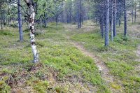 Na webu stareho finskeho trampa Patikky jsem se docetl, ze tahle cesta, kterou dnes cely den jdu, je tzv. "Stara postovni cesta". Mozna to neni pravda, nikde jinde jsem na to nenarazil, ale na druhou stranu je informaci o puvodnim osidleni tehle casti Laponska na webu pomalu, a jeste jen ve finstine (knizek je vice, ale netusim, kde bych je v Cechach shanel).Presto mi to pripada docela mozne. Nekdy loni jsem na tehle stezce nasel prastary strom s letopoctem 1923. Zhruba v tehle dobe se take objevila na Inari prvni postovni schranka. Tak proc by tu nemohla vest postovni stezka z Inari do secerniho Norska. Na americkych povalecnych mapach vede z Inari jakasi cesta do Sevettijarvi a tajgou pokracuje carkovane pres Jarvenpaa na Janikilu a dale do norskeho Neidenu. (Existuji i opravdicke silnice, trba z Inari do Karasjoiku a do Utsoki, kterymi vyhaneli Nemce pryc do Norska, a pochopitelne slavna Petsamo Highway z Ivala pres Nellim ke slavnemu klasteru v Petsamu na brehu severniho more (mezi valkami patril Finsku, dnes uz tu Rusove maji jen niklove doly, ale ten klaster zcasti obnovili).