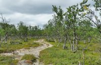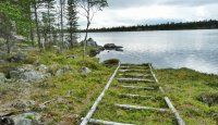 Vcera jsem usel asi 15 kilometru, z toho probloudil tretinu, tretinu cesty take prselo a teplo bylo pres den kolen 14 stupnu, v noci jen 8-9. Vecer jsem dorazil do mista zrejme vyzname rybarske osady (ci spis farmy) Jarvenpaa. Posledni clovek se odtud odstehoval v roce 2002 do9 Sevettijarvi. Takze tu zbyla jen asi pulkilometr v prumeru louka se zbytky drevenych staveni, nektere byly dost velike. Vesnice byla zalozena snad koncem 19. stoleti, venovali se tu take chovu skotu a ovci (prestoze se traduje, ze jen sobi a ryby byly obzivou). Prochazela tudy stara postovni cesta, takze fakt vyznamne osidleni. Dneska z postovni cesty jen stezicka, ale ze Sevettijarvi az sem je pomerne slusne znacena nariznutymi stromy s rezem vyplnenym tmave cervenou barvou. Rekl bych, ze nove obnovenou.