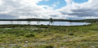 Je pozde, slunicko sviti, pres dvacet stupnu a koncim u jezera, ktere ma strasne zajimavy laponsky (samsky) nazev: Vannjiikeessimluobál - co to znamena netusim. Je to takovy skoro nebesak bez zjistitelneho pritoku, jako vetsina zdejsich jezer. Ale rybari tu byvaji, maji vytazenou lod na breh a opostene ohniste, kupodivu bez hromady flasek od chlastu.