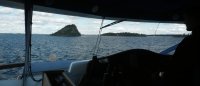 Jenomže dneska je z toho turistická atrakce. Odvezou vás tam vyhlídkovou lodi za dvacet euro, až na vršek vedou dřevěné schody a pan kapitán tu skálu vydává div ne za rozhlednu.