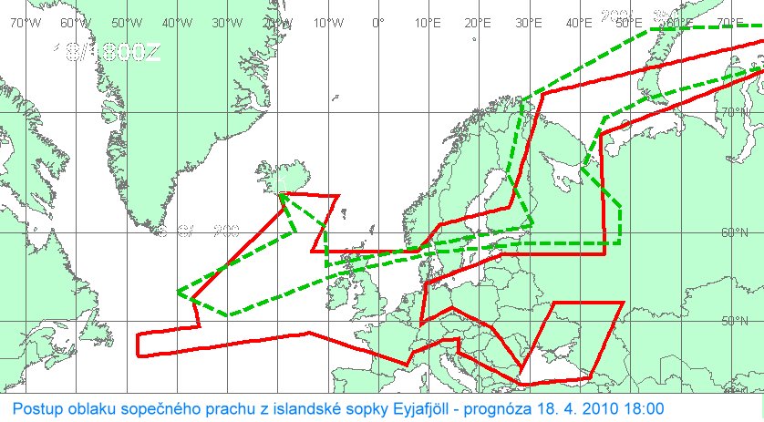 Český hydrometeorologický ústav (ČHMÚ) na svých webových stránkách s odvoláním na poslední výsledky výpočtu šíření oblaku vulkanického popela uvedl, že je možné, že ve vyšších vrstvách ovzduší se část popela rozšíří i nad české území dnes odpoledne.